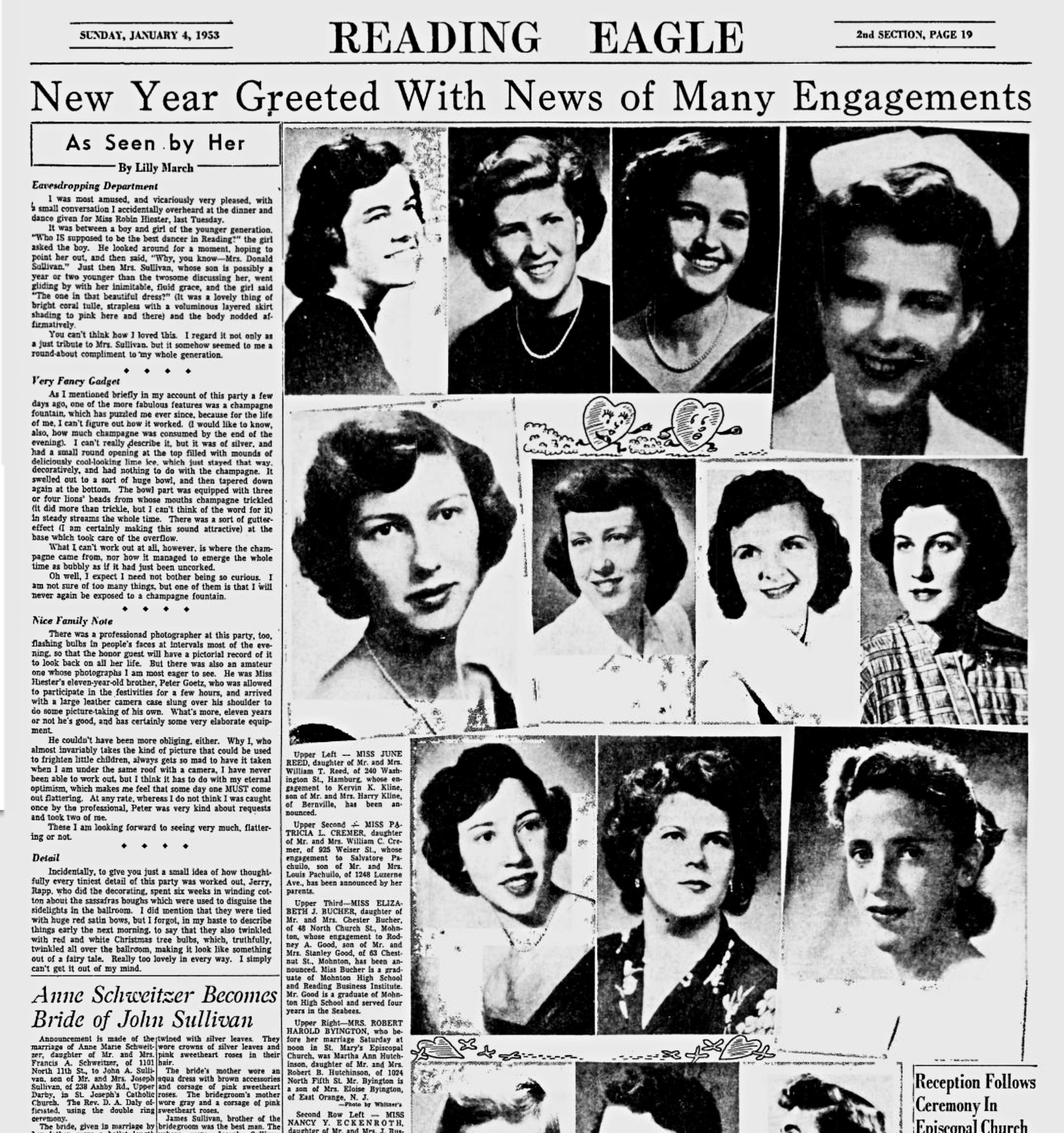 Hutchinson-Byington Marriage Reading Eagle article 04-JAN-1953