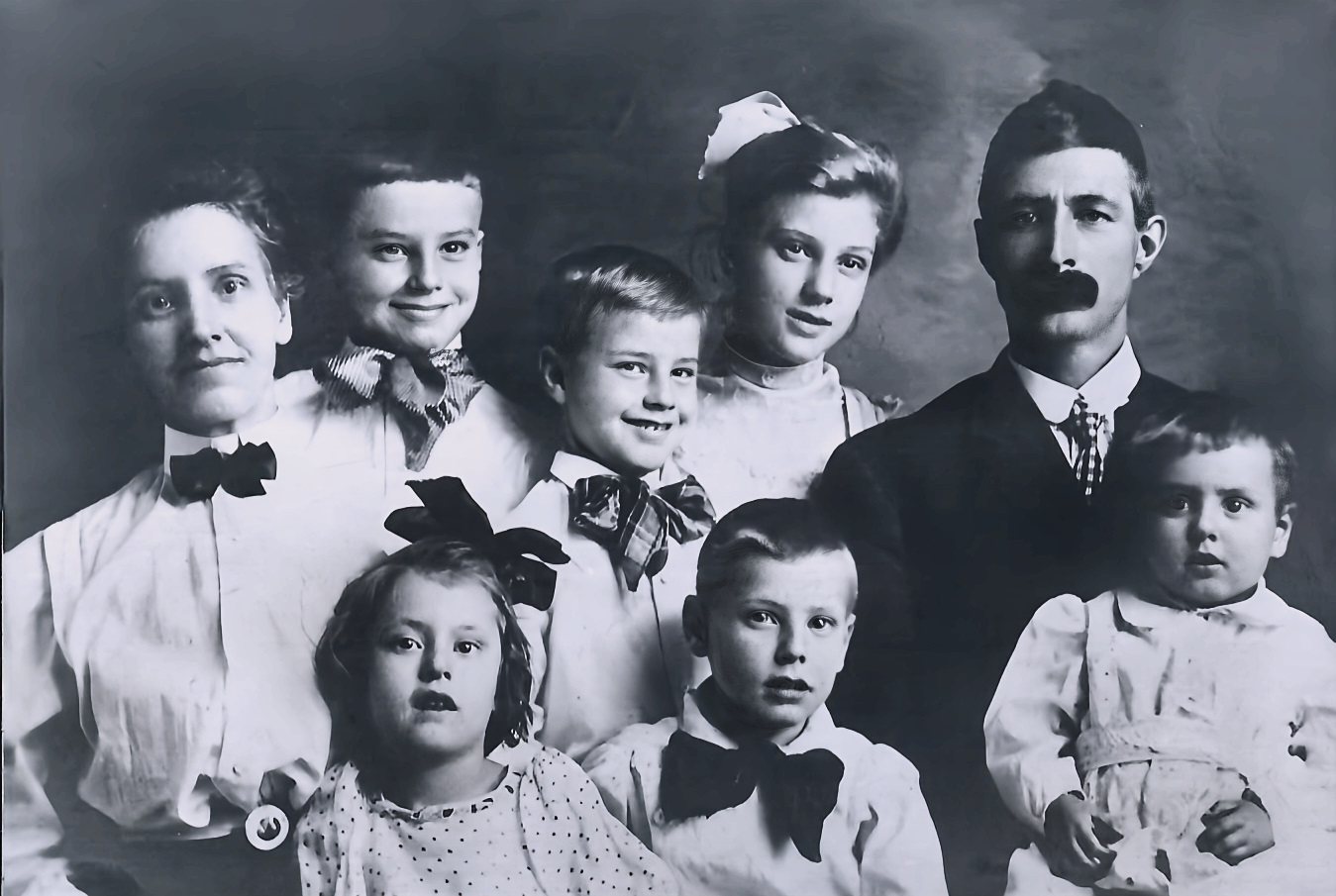 Lackey Family, back Catherine, Ray, Robert, Marie, Harry, front Mildred, James, Howard (c1908)