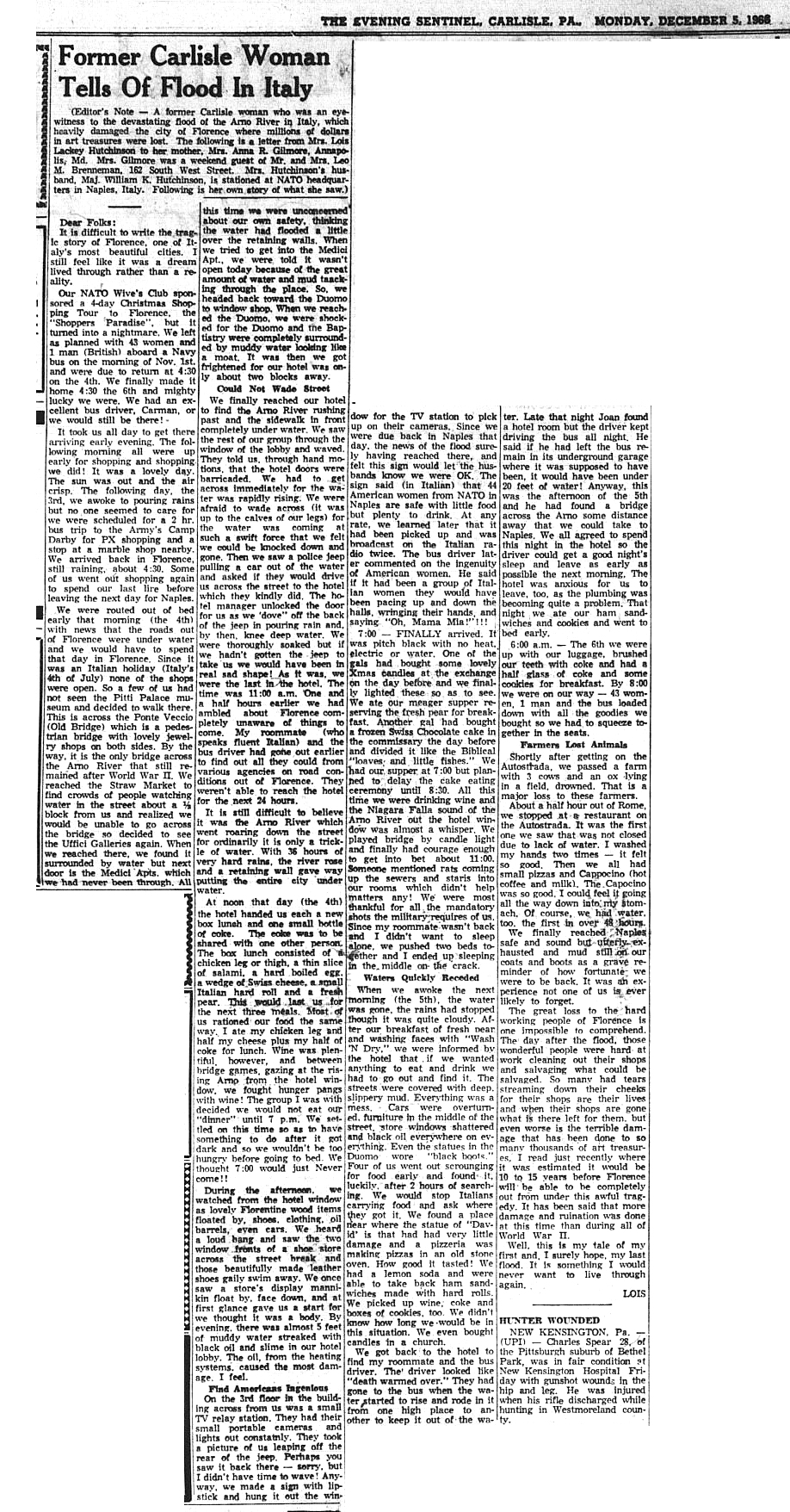, 05-DEC-1966, first hand account by Lois about her experience during the 04-NOV-1966 Florence, Italy flood.