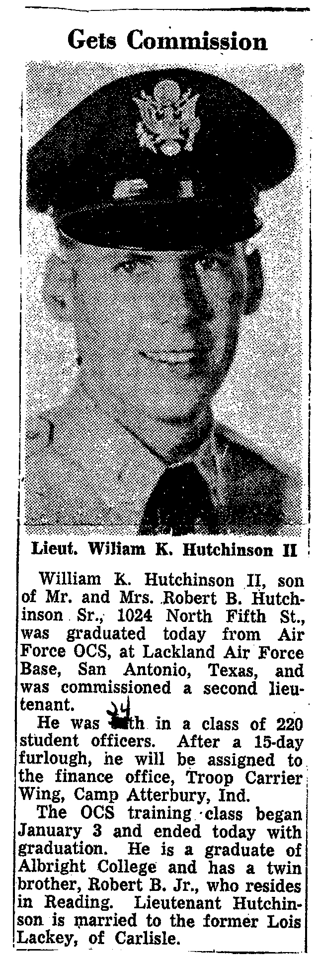 William K Hutchinson II Officer Candidate School Graduation announcement 1952