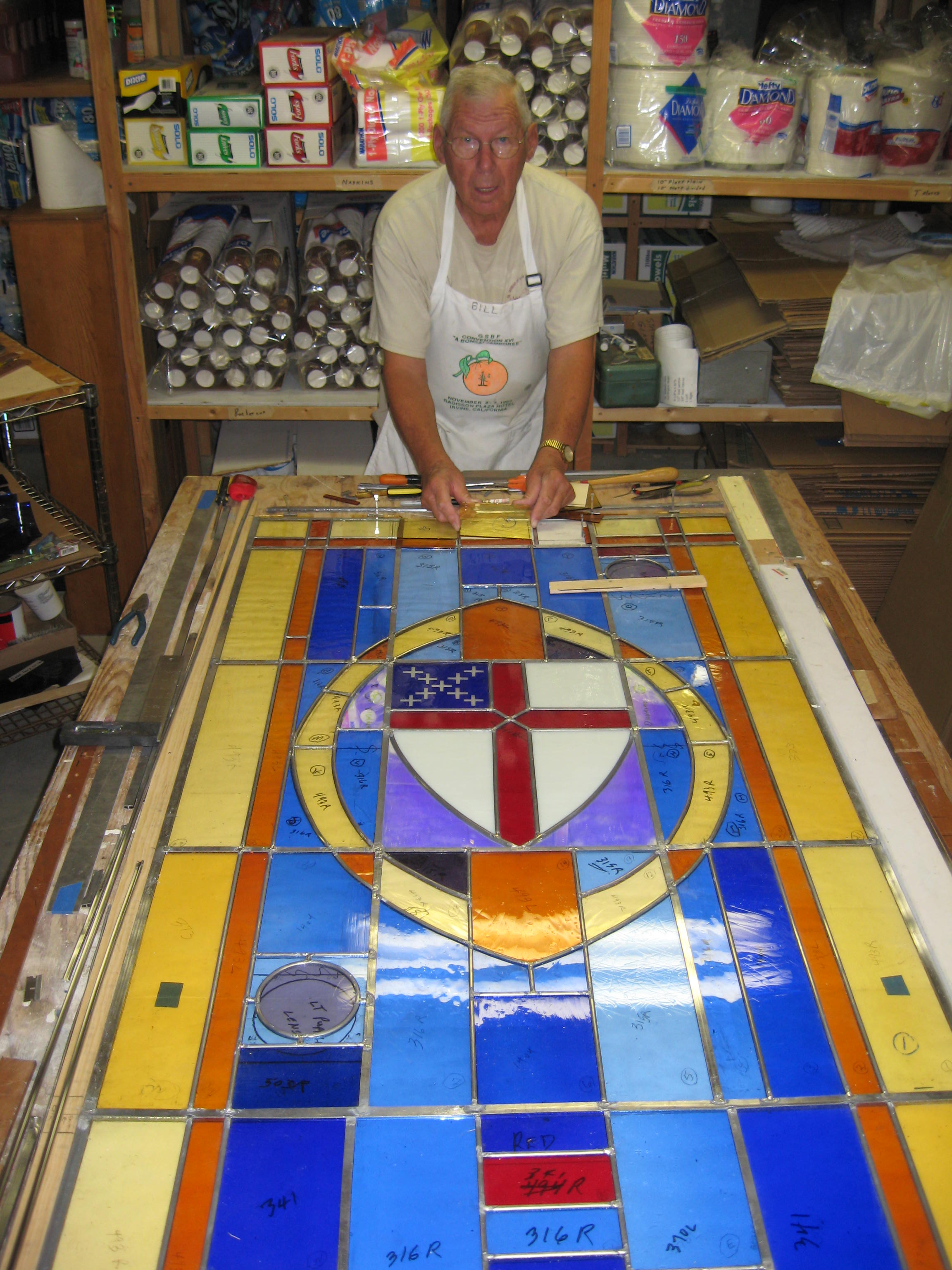 William K Hutchinson II working on a stain glass chapel door (2010)