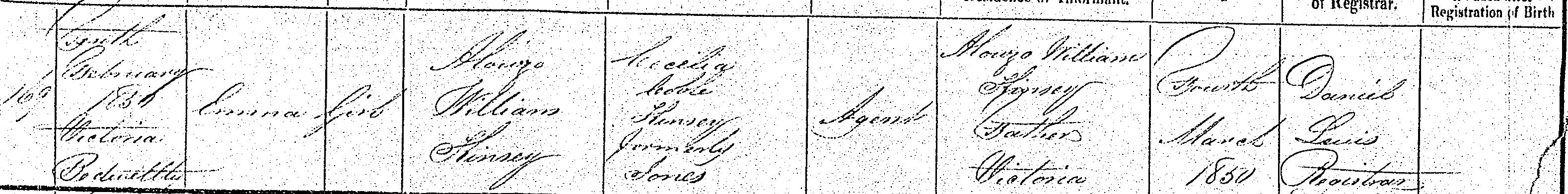 Emma Kinsey Birth Certificate 11-FEB-1850.