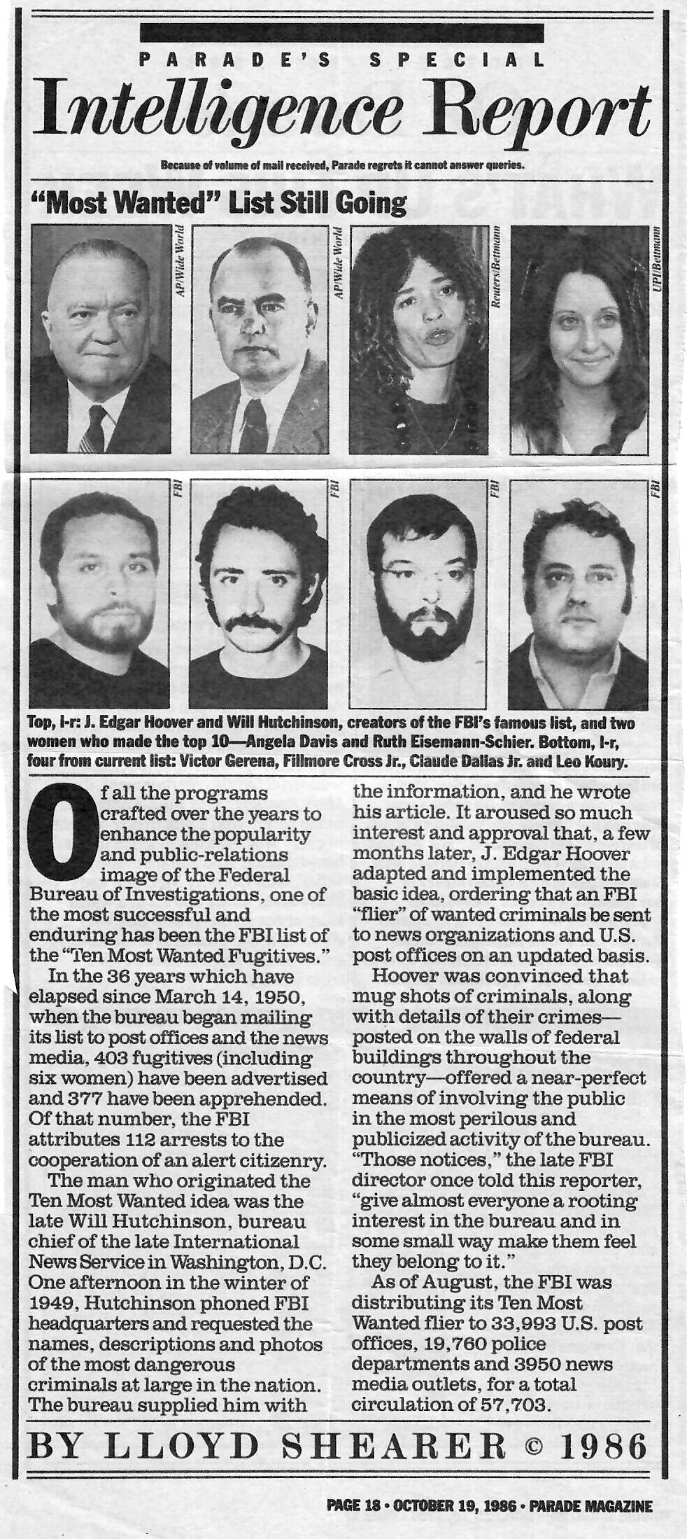 William K. Hutchinson I, Parade Magazine - Intelligence Report 19-OCT-1986